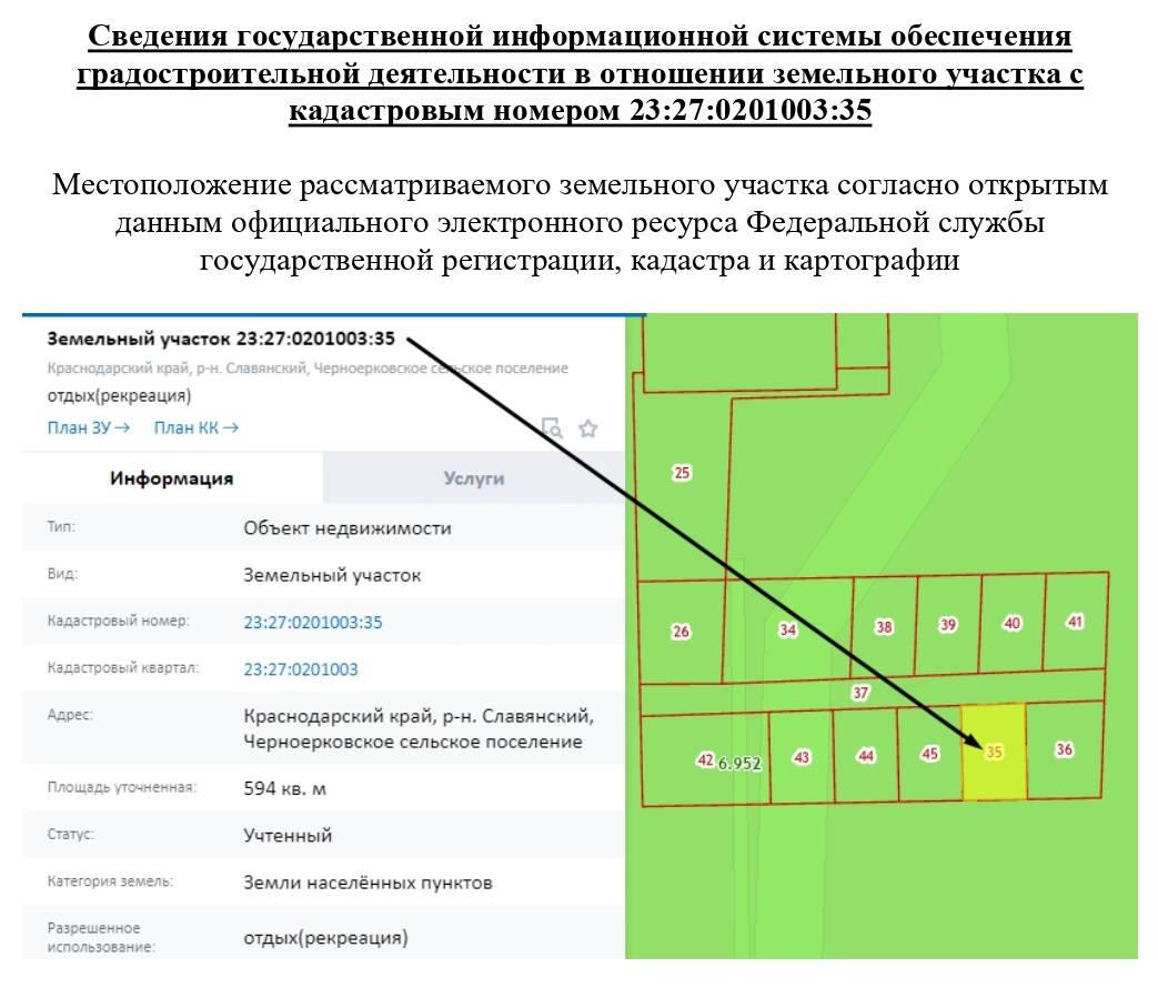 | Кадастровый номер участка/квартала | 23:27:02010003:35 | |