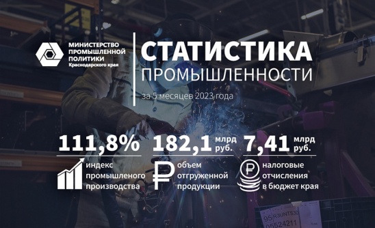 За пять месяцев с начала 2023 года объем промышленного производства на Кубани вырос на 11,8%